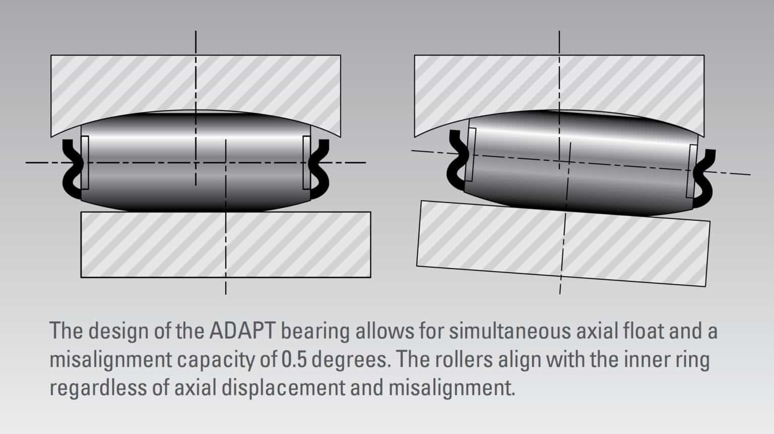 Timken® ADAPT™ combines cylindrical and spherical roller bearing designs into one easy-to-assemble, high-capacity configuration. It’s ideal for applications with combined misalignment and axial displacement.